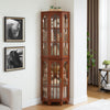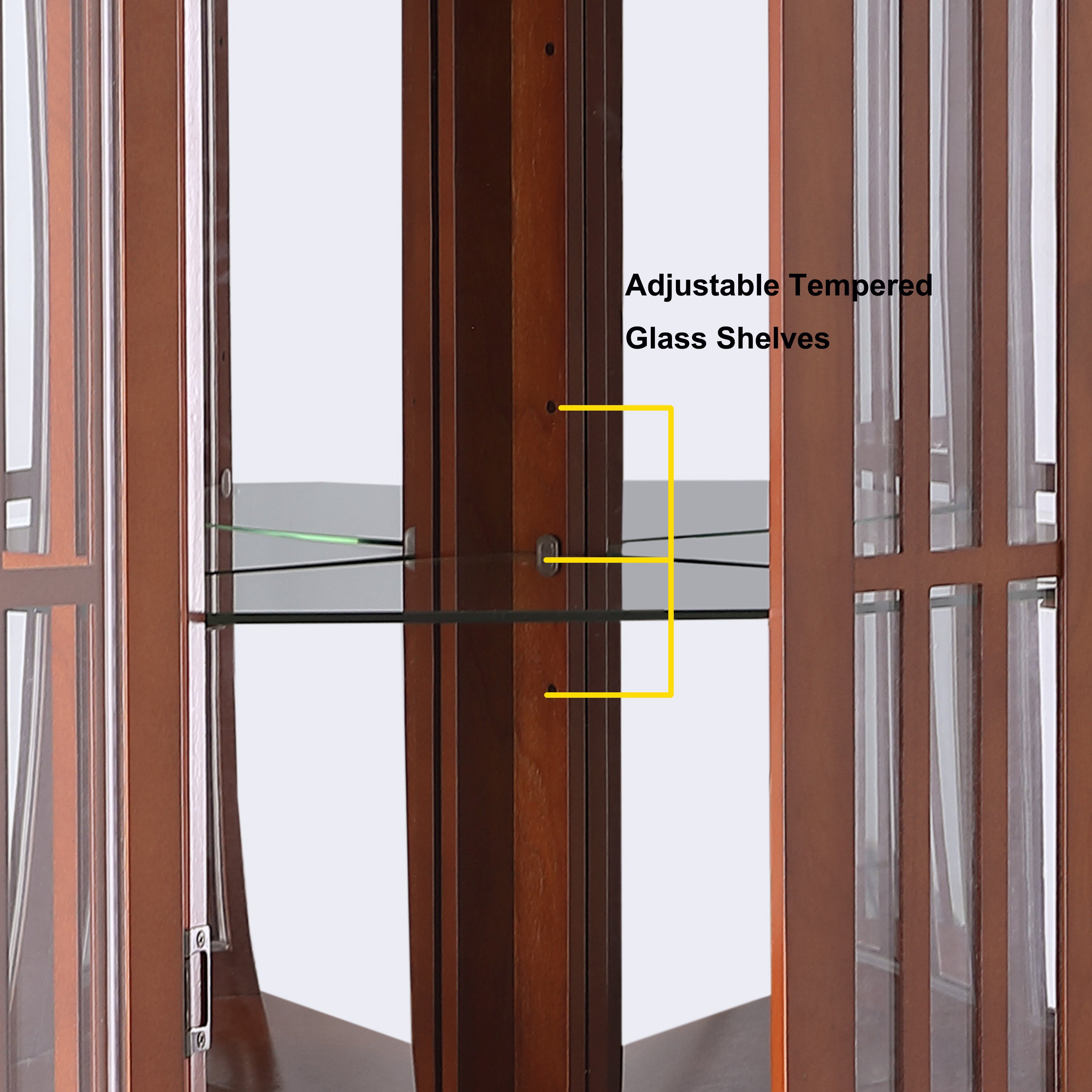 Corner Curio Cabinet with 4 Adjustable Tempered Glass Shelves and Lighting System, Solid Wood Legs,Acrylic Mirrored Back Panel(E26 light bulb not included)
