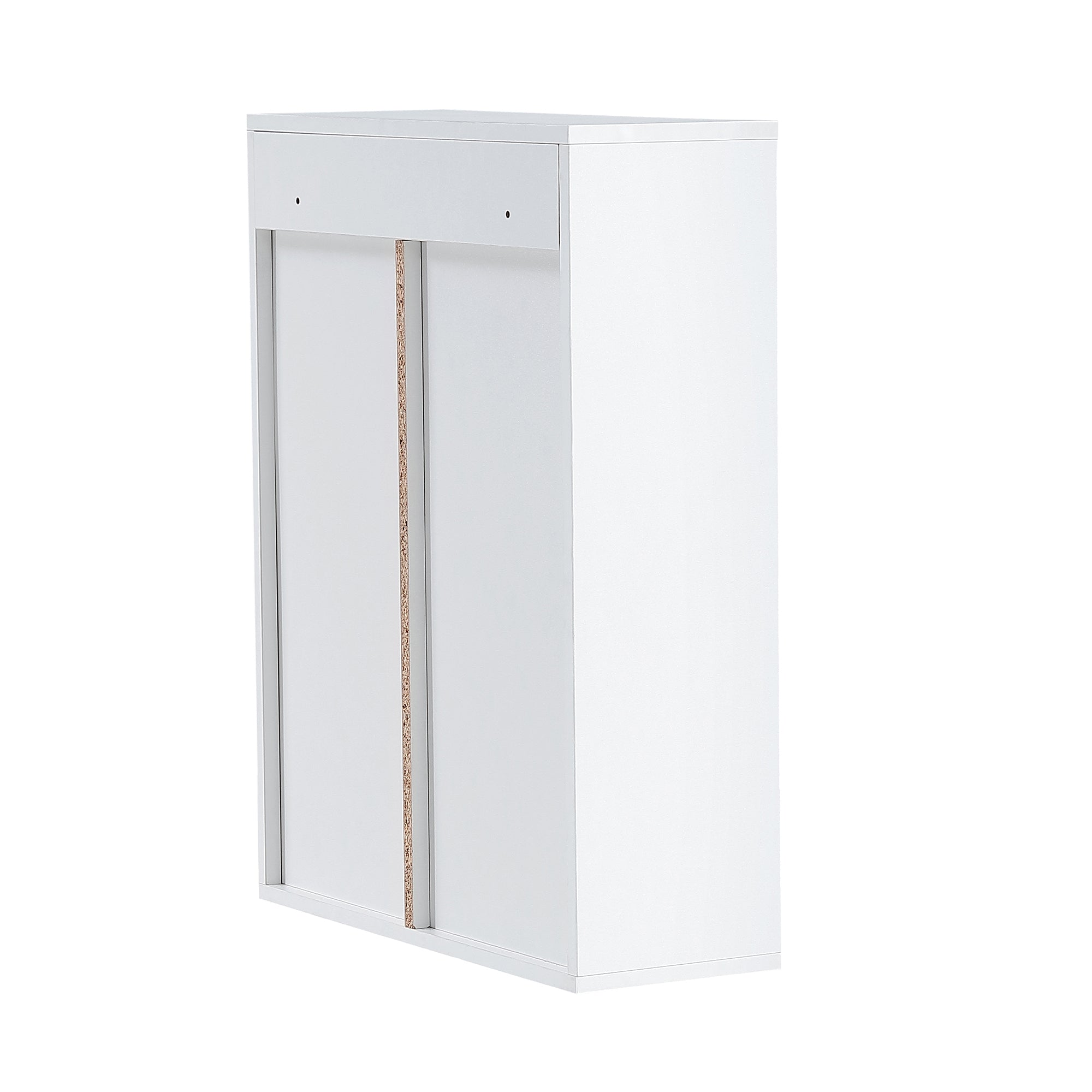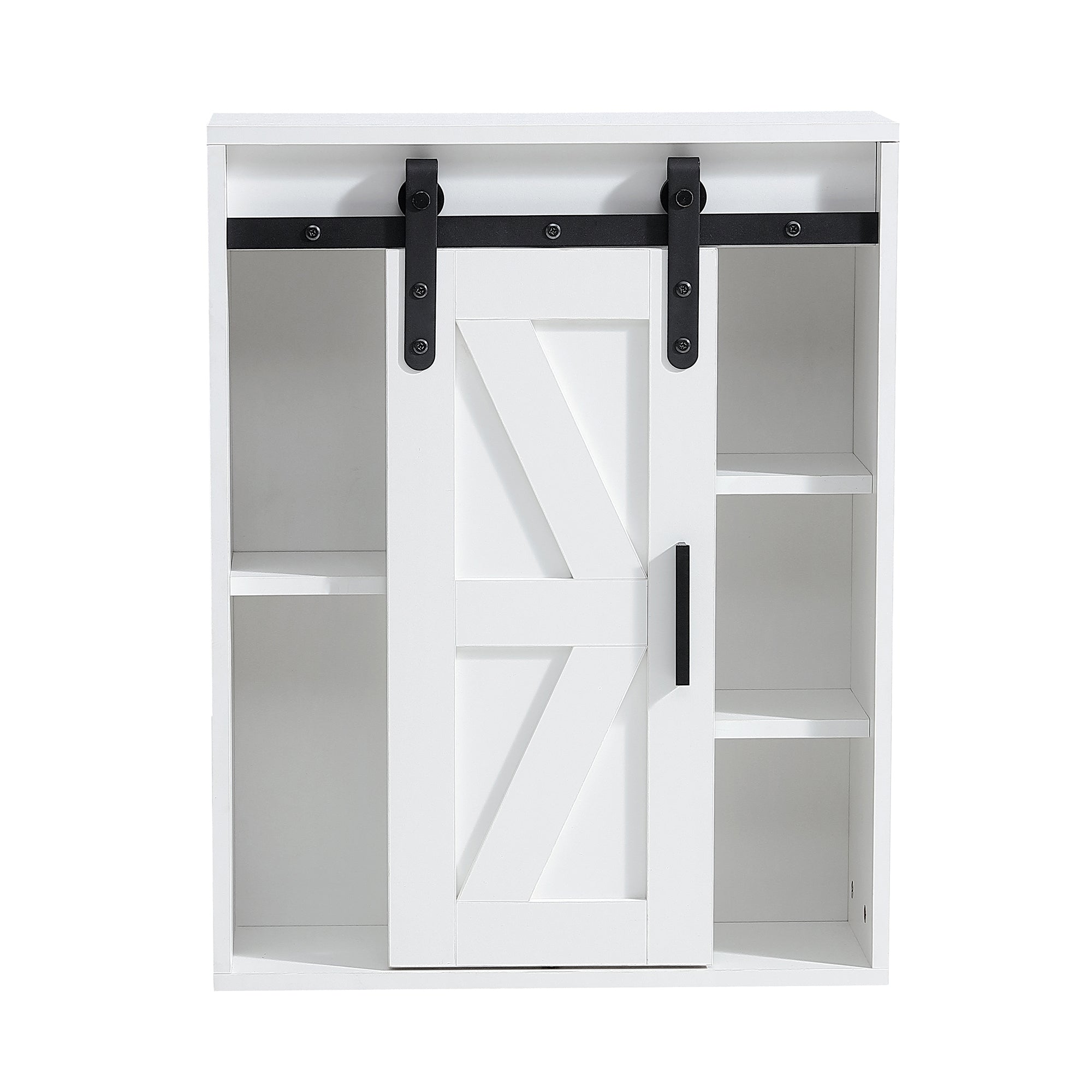 Wood wall-mounted storage cabinet, 5-layer toilet bathroom storage cabinet, multifunctional cabinet with adjustable door, white