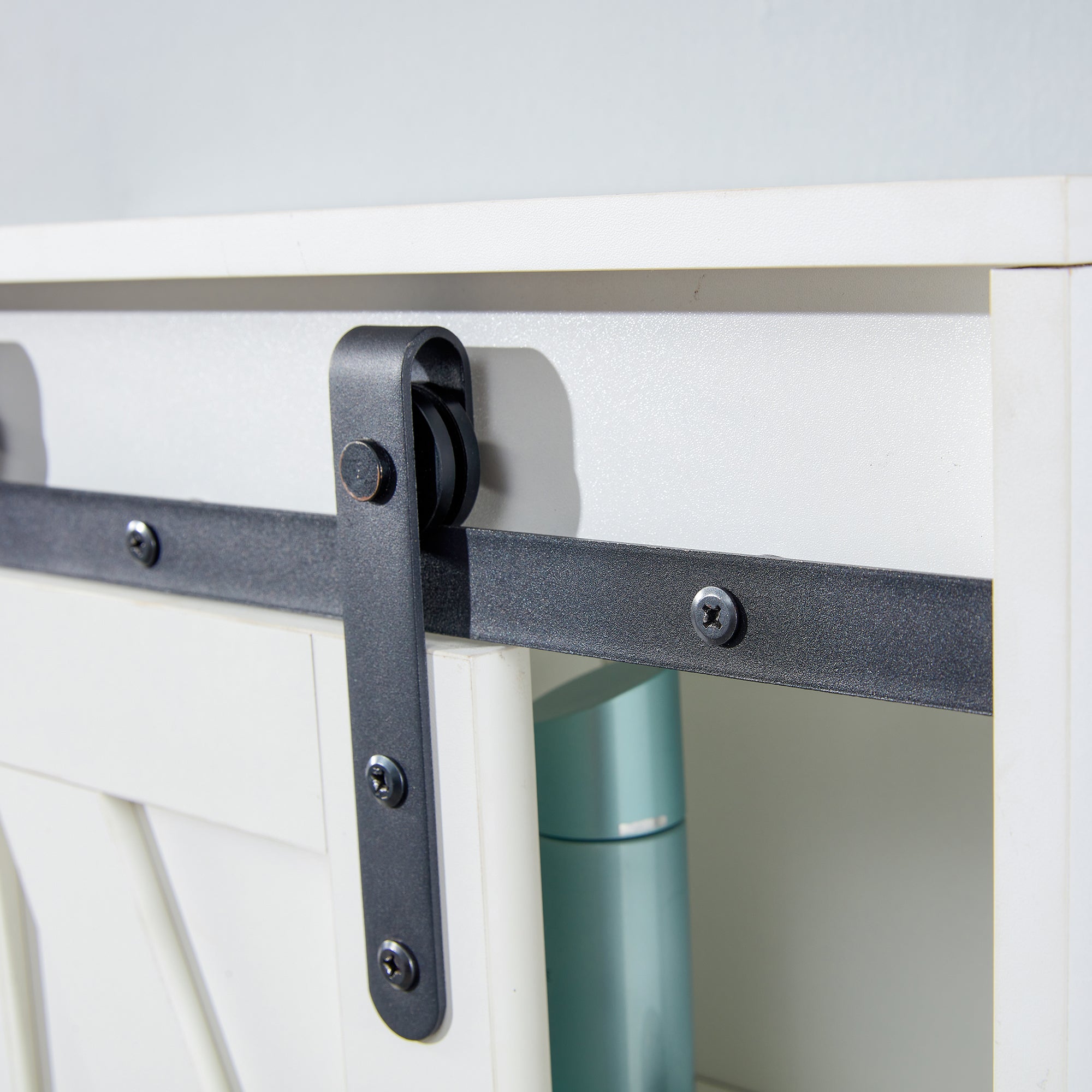 Elegant Details:The cabinet is made of MDF and metal, and it is divided into 5 spaces with 3 heights available to store the right amount of items accordingly. The sliding door design does not pinch your hand and reduces damage to the door from opening and closing.