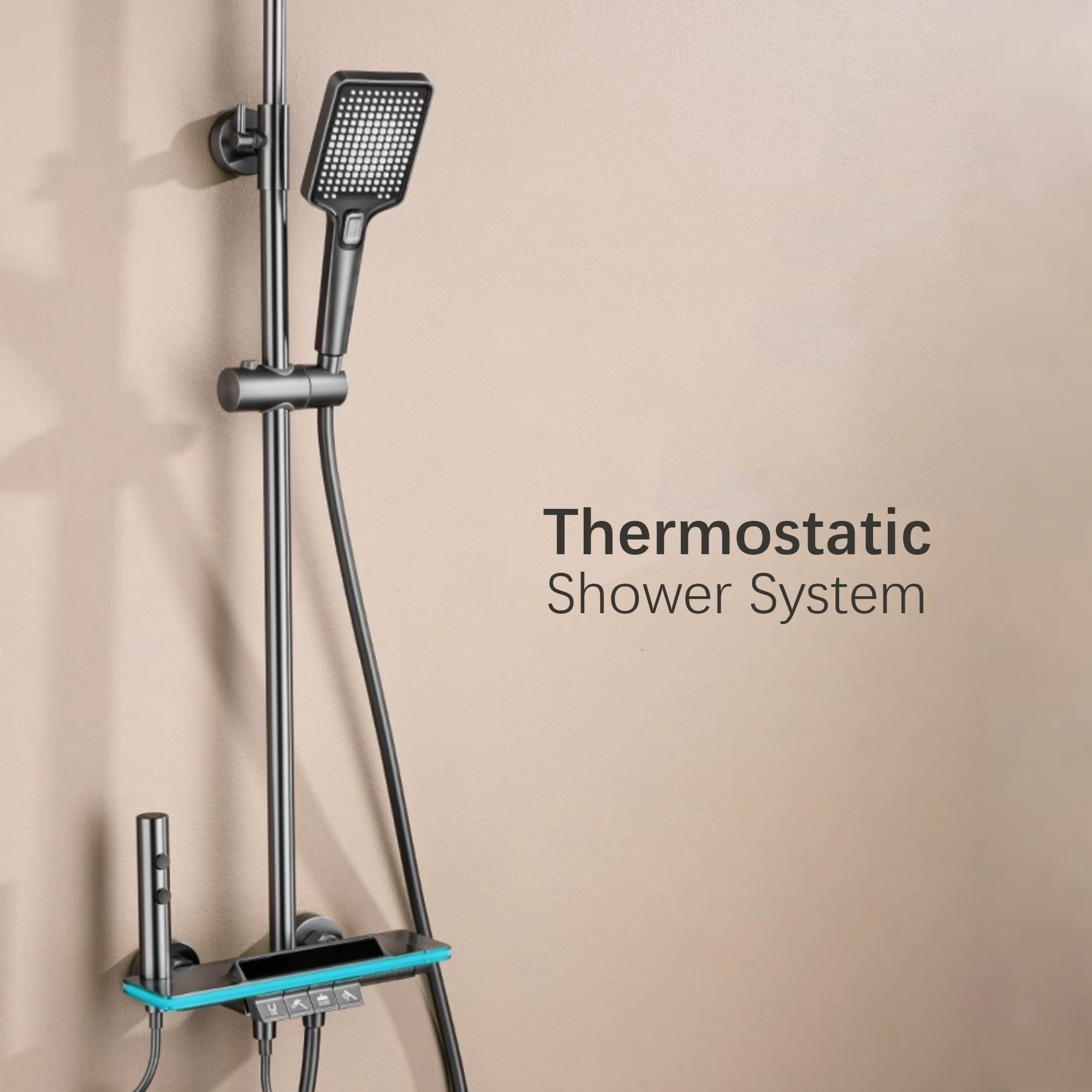LED Digital Display Shower System High Pressure Shower Head and Handheld, Thermostatic Valve, Luxury Rainfall Shower Faucet