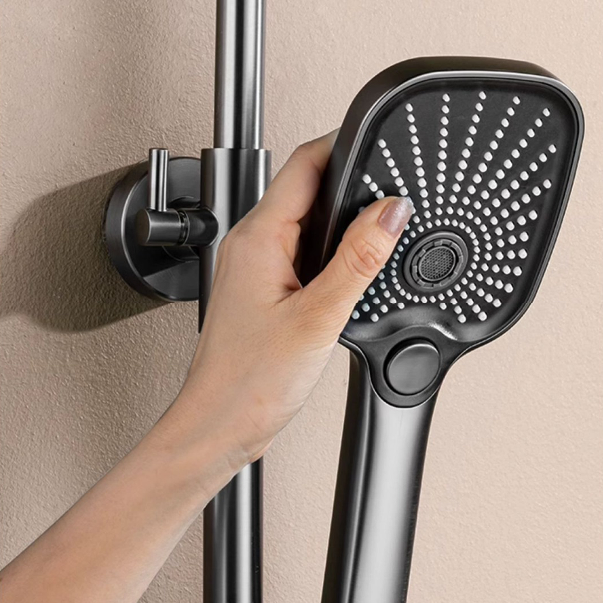 2. Overhead shower with super large diameter, silicone water outlet, self-cleaning needle pops out automatically, and the water flow is smooth and not blocked. 360°rotation adjustment to adjust the comfortable water outlet angle. The hand shower has 3 adjustable settings including Rain, Mist and Pulse.