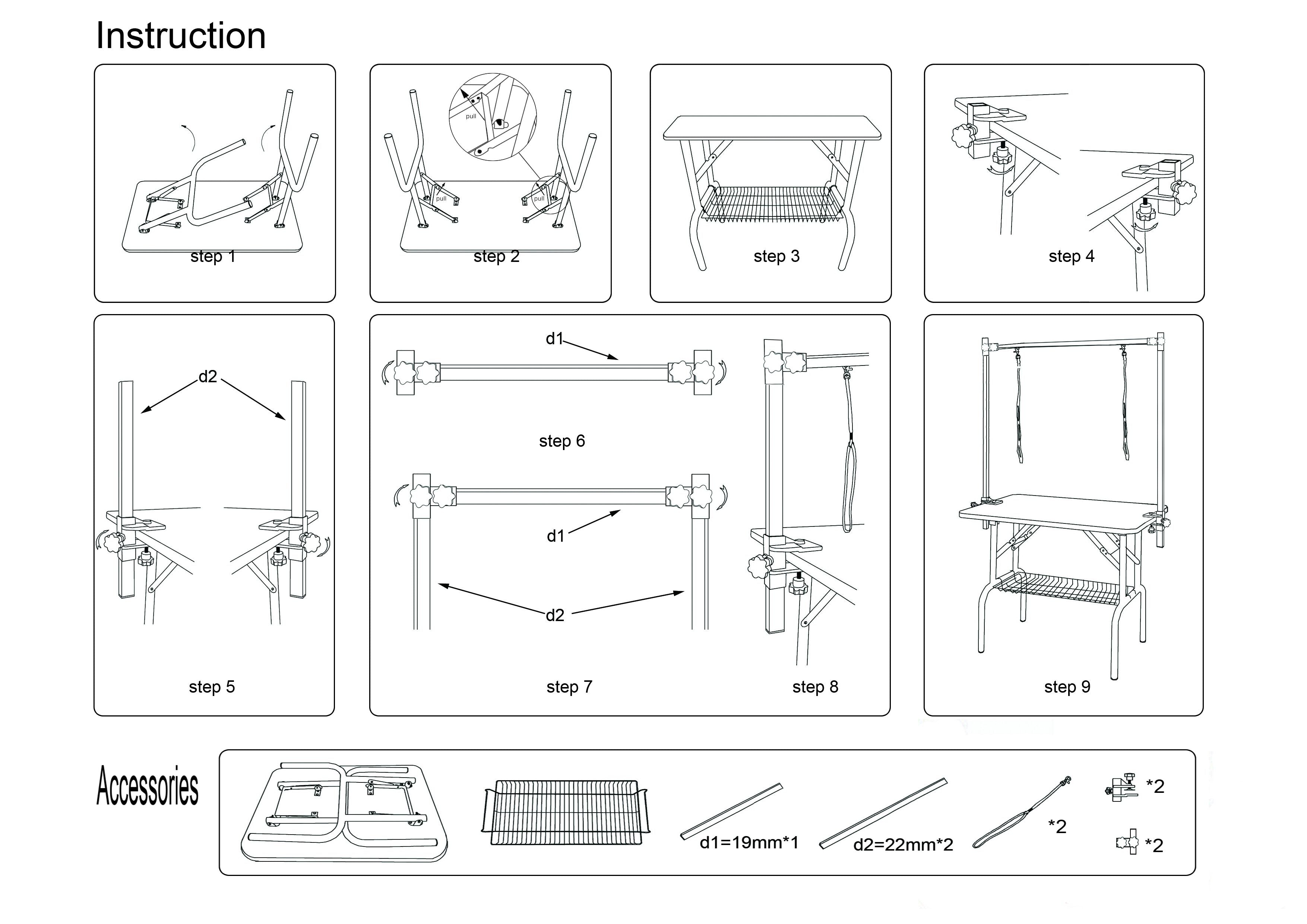 42" Folding Dog Pet Grooming Table Stainless Steel Frame Rubber Mat on Board with Adjustable Arm and Clamps pet dog Cat Grooming Table (SILVER-GRAY COLOR)