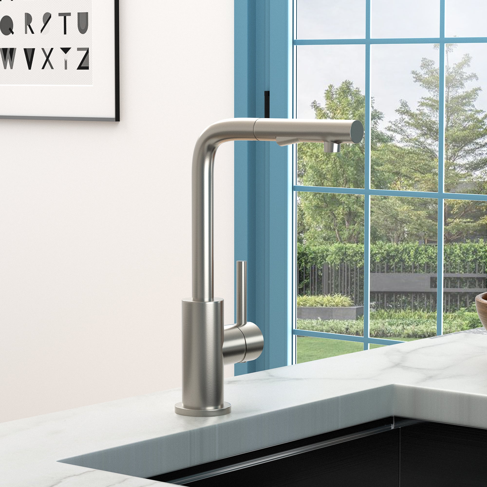 • The kitchen faucets adopt right-angle design, and the retractable hose and 360-degree rotation to provide all-round cleaning. The dual-function sprayer can easily switch between spraying and streaming, which adds convenience in daily kitchen work.