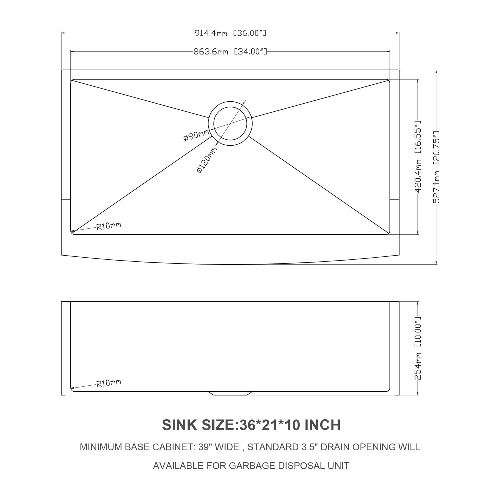 36 Rose Gold Farmhouse Sink - 36 Inch Kitchen Sink Stainless Steel 16 gauge Apron Front Kitchen Sink