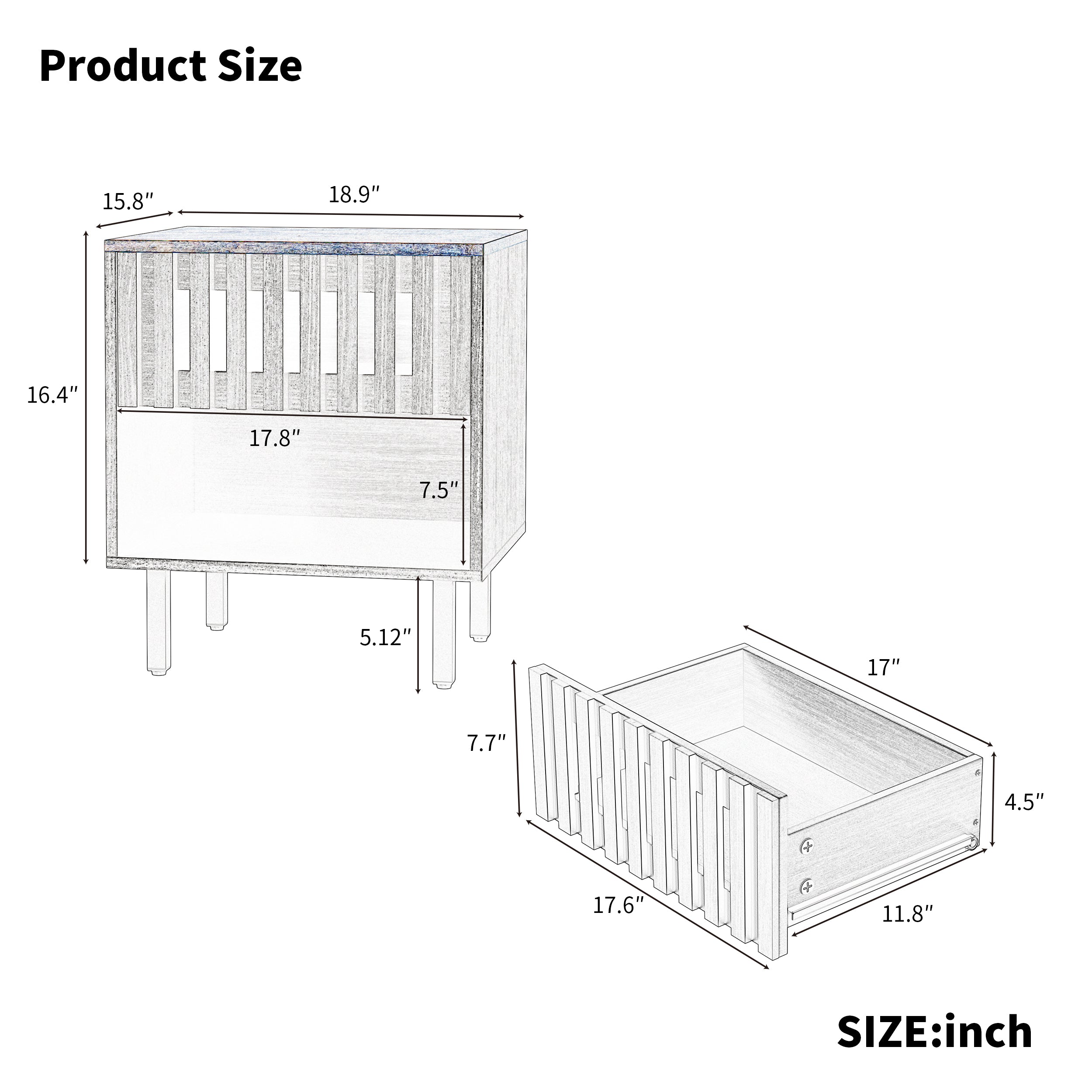 2 Set Nightstands with Grille Striped Doors, Mid Century Modern Nightstand, Bedside Table with Slatted Drawer Decor, End Tables Bedroom with Metal Legs, Night Stand for Bedroom