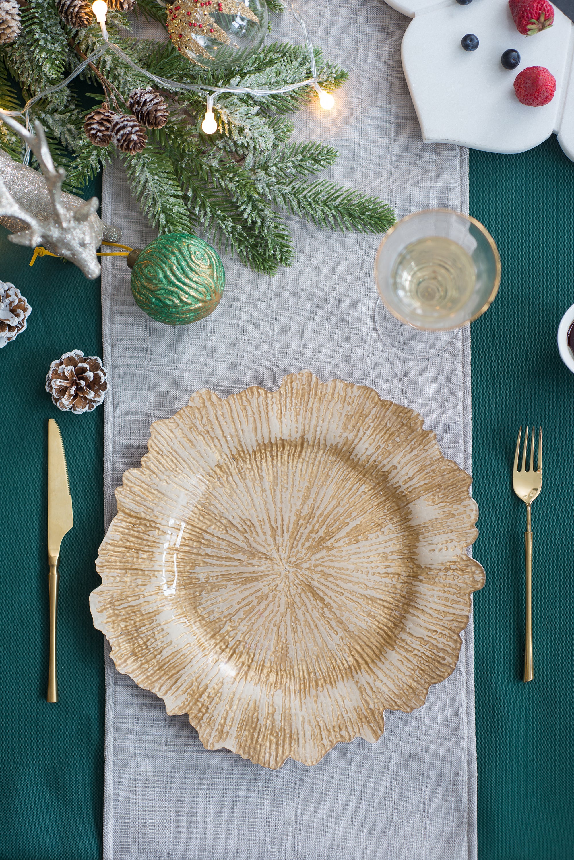 • Premium quality medium weight plastic charger plates, elevate your dining experience with a splash of color and style.