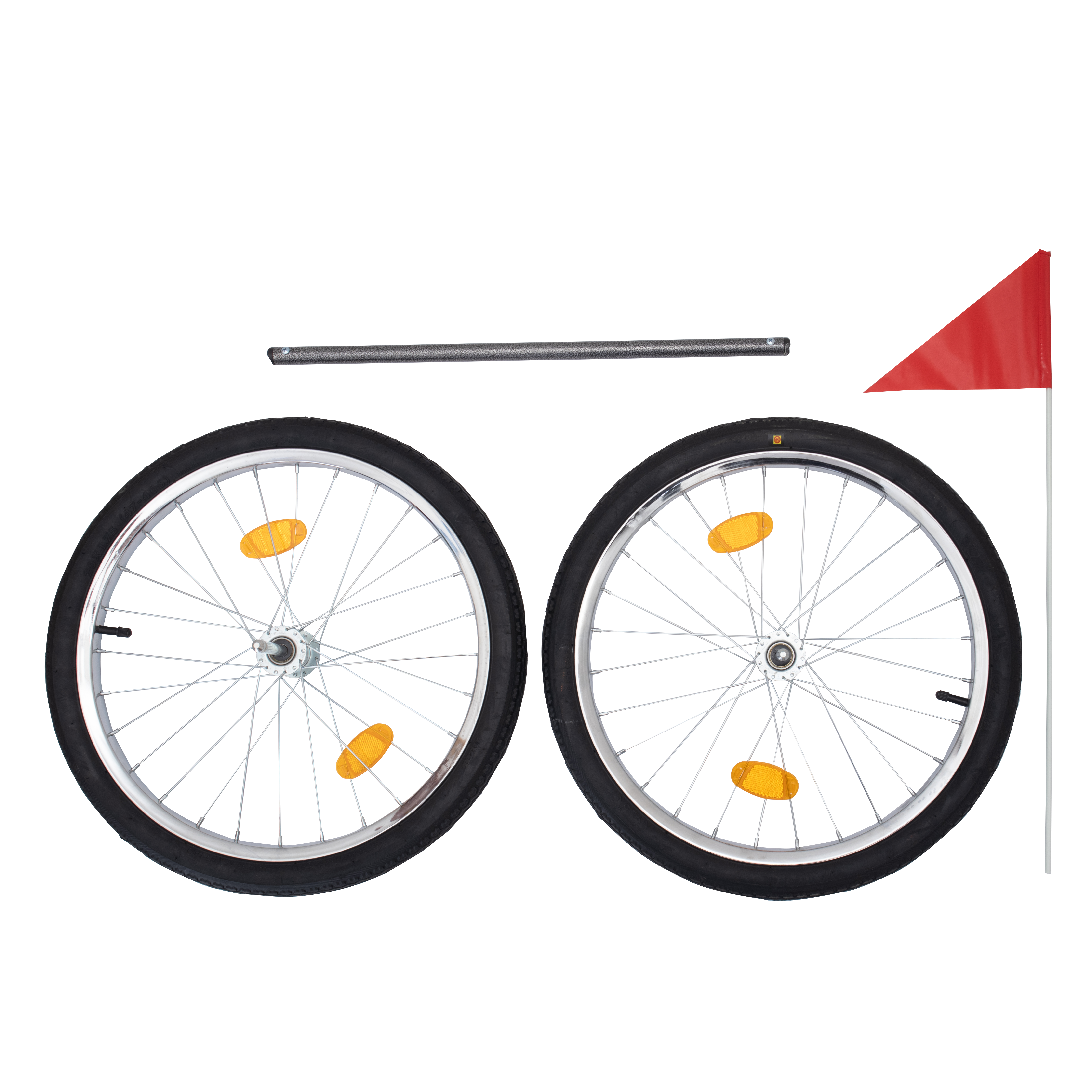 • Two 20" rear wheels provide a smooth ride on pavement and are off-road capable for those adventures into the wilderness. The red flag on the dog carriage and reflectors on the wheels provide visibility in traffic and low-light conditions.