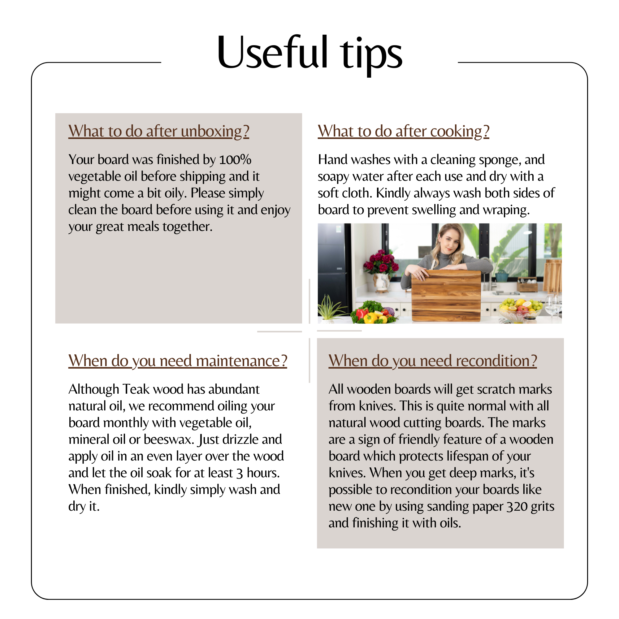 GoldenHome offers a wide range of wooden products that can definitely answer the needs of home organization and decoration lovers. Crafted from high-quality natural wood, our products include wooden racks, shoe racks, stools and cutting boards. Not only do they highly functional, but the minimal yet trendy designs of our products also make them a great décor for your beloved houses. This thick cutting board is made of 100% teak wood that is strong and durable. It also comes with a handgrip design for a better grab without slipping. This multipurpose board is reversible and can be used on both sides. This wood board is food safe and eco-friendly. Its perfect for cutting or chopping meat, vegetable, fruit, bread or cheese. It can also be used as a platter to serve fancy breakfast, lunch, dinner at home, a café or a restaurant