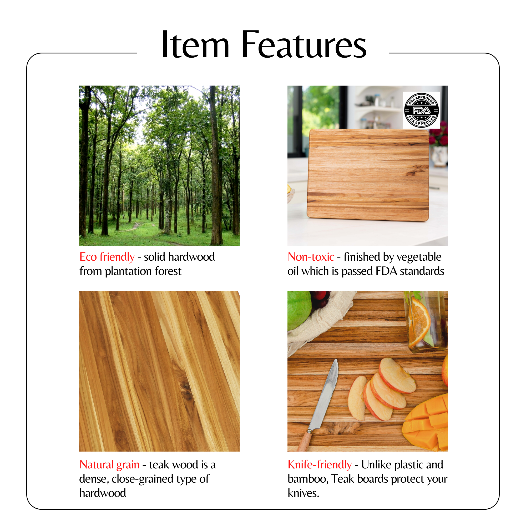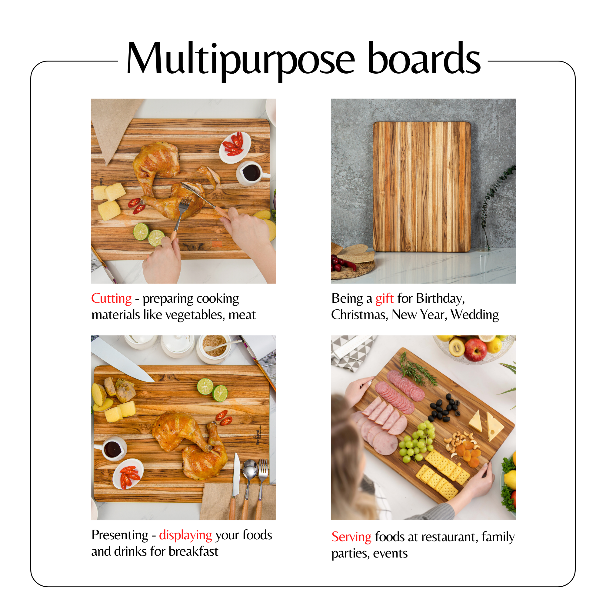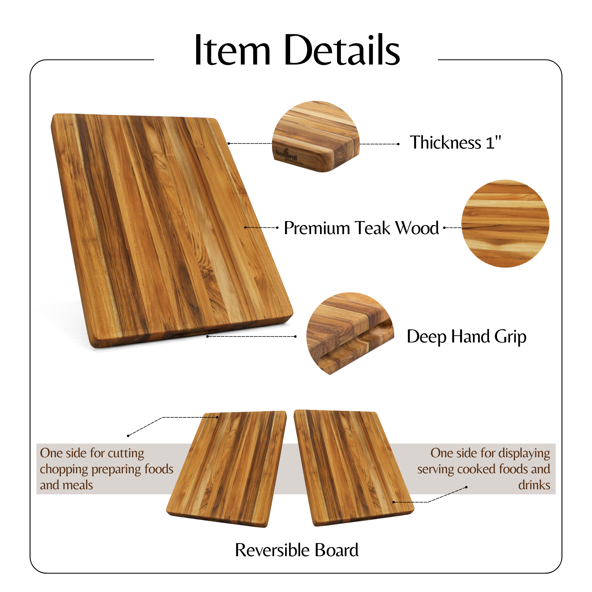 Teak Cutting Board Reversible Chopping Serving Board Multipurpose Food Safe Thick Board, Medium Size 18x14x1 inches